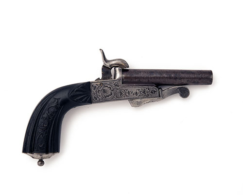 AN UNUSUAL 10mm PINFIRE SINGLE-SHOT POCKET-PISTOL SIGNED 'P. BERGAT', no visible serial number,