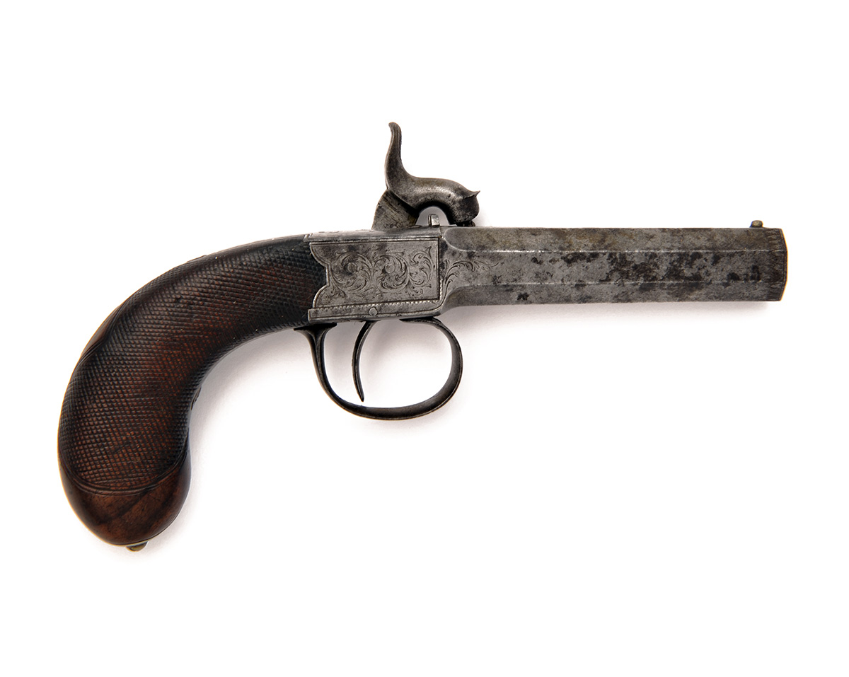A 36-BORE PERCUSSION SIDE-HAMMER POCKET-PISTOL SIGNED W. PARKER, HOLBORN, LONDON, no visible serial number,