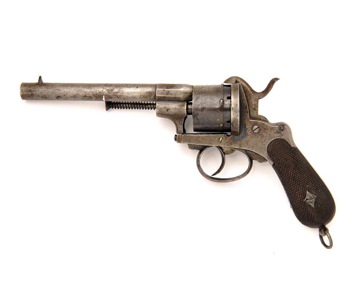 A 12mm PINFIRE DOUBLE-ACTION REVOLVER, UNSIGNED, no visible serial number,