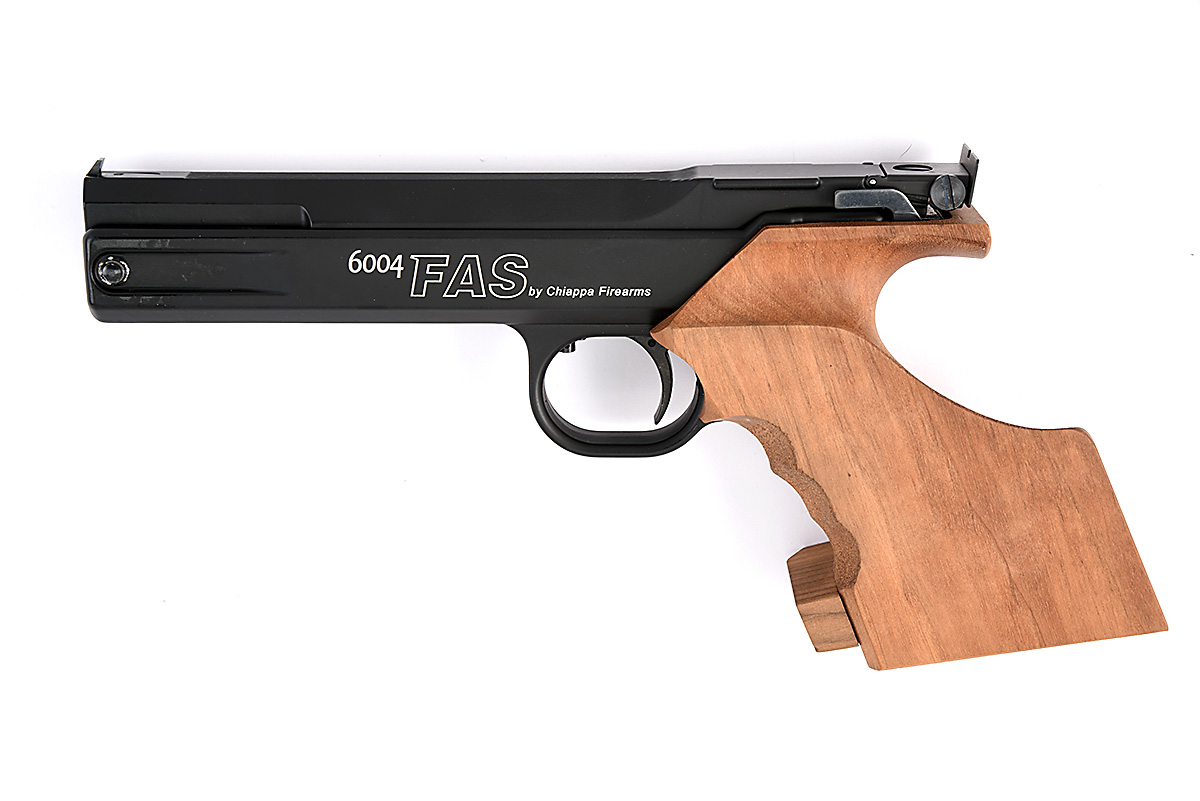 A CASED .177 SINGLE STROKE PNEUMATIC TARGET AIR PISTOL SIGNED CHIAPPA FAS MODEL 6004 serial no. 14G01841