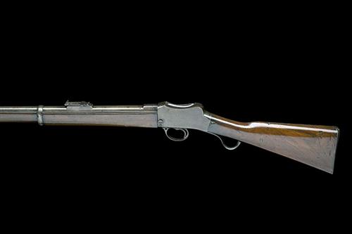 dated for 1897, with 33in. sighted barrel signed 'WESTLEY RICHARDS & CO' and marked 'HENRY RIFLING', slab sided dropping block receiver marked on the left 'WESTLEY RICHARDS & CO' together with the triangle trade-mark, the right side marked 'MADE SPECIALLY FOR Z.A.R.', walnut butt-stock, three-quarter length fore-end and iron furniture, missing ramrod, minimal traces of original finish