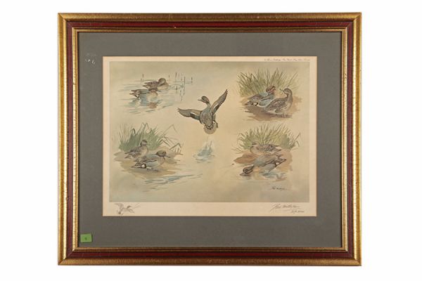 A COLLECTION OF SIX LIMITED EDITION R.W. MILLIKEN PRINTS, number 27 of 500, showing various positions of pheasants, woodcock, grouse, teal ducks and wigeon ducks, glazed and set in a gilt framed, measuring approx. 24in x 20in.