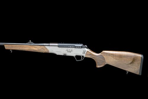 22 1/4in. cold-forged steel nitro barrel with block-mounted adjustable open sights with fibre optic inserts, ramp-mounted sprung high visibility fore-sight, titanium finish action with border and oak leaf detailing, detachable box magazine, set trigger, 14 1/4in. pistolgrip stock with cheekpiece, hogsback comb, quickly-detachable sling swivels and including 1/2in. rubber recoil pad, weight 7lb. 5oz., in its padded fabric 'Integrale' case with paperwork and original cardboard carton