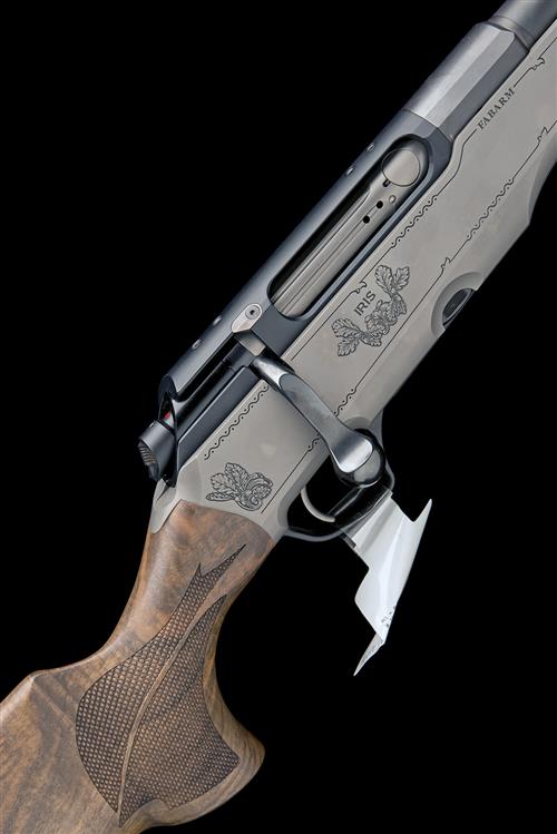 20 1/4in. cold-forged steel nitro barrel with block-mounted adjustable open sights with fibre optic inserts, ramp-mounted sprung high visibility fore-sight, titanium finish action with border and oak leaf detailing, detachable box magazine, set trigger, 14 1/4in. pistolgrip stock with cheekpiece, hogsback comb, quickly-detachable sling swivels and including 1/2in. rubber recoil pad, weight 7lb. 7oz., in its padded fabric 'Integrale' case with original cardboard carton