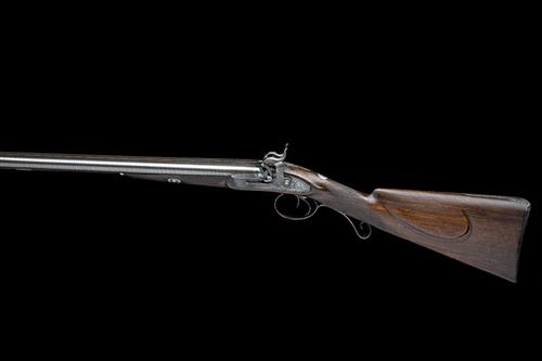 A RARE 14-BORE PATCHLOCK DOUBLE-BARRELLED SPORTING-GUN, no visible serial number,
