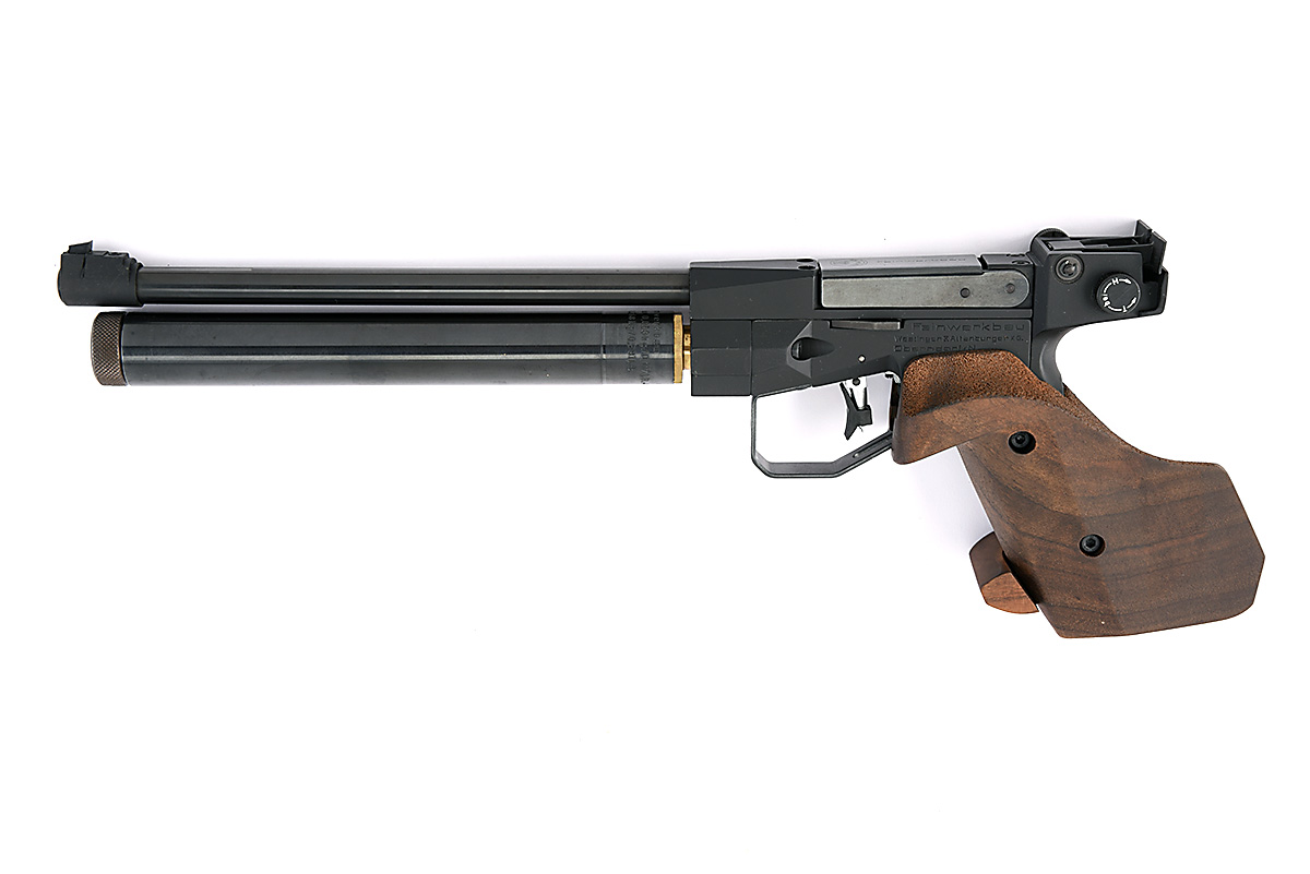with a 10in. barrel adjustable open sights tp loading breech port adjustable match trigger spare air cylinder with ergonomic right hand walnut pistol grips with accessories. Not tested.