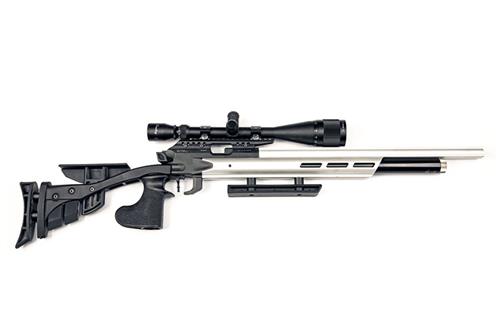 recent, licenced from Carl Walther, with 21 1/4in. barrel including alloy shroud with integral reservoir guard, blacked receiver with oversize ambidextrous cocking piece, composite alloy and abs plastic skeleton stock with ergonomic ambidextrous pistol-grip and adjustable comb, match trigger and isolated fore-end palm-rest, complete with a 'DOWLING' 8-40x44 AO PA mildot telescopic sight and mounts, and its makers? card carton