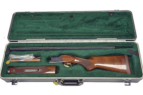 BROWNING 12-BORE 'CITORI' SINGLE-TRIGGER OVER AND UNDER EJECTOR, serial no. 09578PN1B3, together with a set of Briley 20-bore inserts, 26in. nitro barrels with 9mm raised ventilated matt rib, 2 3/4in. chambers, multichoke (with spares), hold-open toplever, manual safety with integral barrel selector switch, gold-washed and chequered single-trigger, blacked action with acanthus scroll engraving, 13 1/2in. pistolgrip stock including later fitted rubber recoil pad, beavertail fore-end, weight 7lb. 9oz. (8lb. 7oz. with inserts), in a case with provision for inserts and some accessories