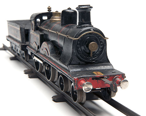 Provenance: In the UK, Bing were perhaps best known for their early model railways, and Bing were one of the first companies in the world to produce toy trains that ran on track. Bing's early locomotives were very Germanic-looking, but a meeting in 1900 between W.J. Bassett-Lowke and Stefan Bing resulted in Bassett-Lowke's company importing Bing trains to the UK (repainted in "correct colours" for UK train companies), and also resulted in W.J. producing a design for a more English-looking locomotive for Bing to manufacture.