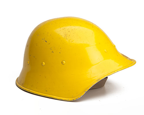 including an army type with the post 1944 black finish, a smooth black example for the fire-brigade, a gloss white example also for the fire brigade and a gloss yellow example for the emergency services, the last in aluminium the remainder in steel (4)