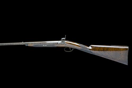 A MOST UNUSUAL POSSIBLY EXPERIMENTAL 54-BORE PERCUSSION DISMOUNTABLE BREECH-LOADING RIFLE, no visible serial number,