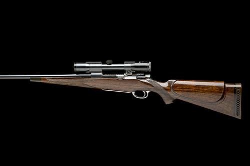 24in. unsighted nitro barrel engraved 'DAVID LLOYD. PIPEWELL. CAL. 25/06', the underside with 'REBUILD BY T.T. PROCTOR' and the serial number, receiver (with thumb cutout) mounted with a Swarovski Habicht 4 telescopic sight, serial no. 426760, in Lloyd mounts (the rear mount replaced, original Lloyd mount supplied loose), sidewall marked 'DEUTSCHE WAFFEN-UND MUNITIONSFABRIKEN BERLIN', Lloyd bolt handle, side safety, alloy hinged floorplate with push button release, alloy triggerguard, pistolgrip stock with cheekpiece and raised comb, horn pistolgrip-cap and fore-end finial, 13 3/4in. pull including 1in. ventilated rubber recoil pad, weight 8lb. 12oz.