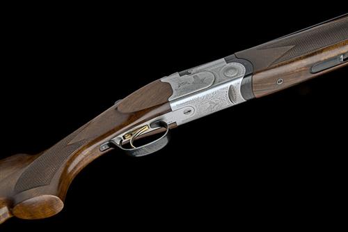 29 1/2in. nitro barrels with 10mm ventilated matt top-rib, 2 3/4in. chambers, multichokes (with spares), hold-open toplever, automatic safety with integral barrel selector switch, gold-washed trigger, floral and scroll engraving with game scenes of duck, partridge and woodcock, bright and blued finish, 14 1/4in. pistolgrip stock including 5/8in. rubber recoil pad, weight 7lb. 14oz.