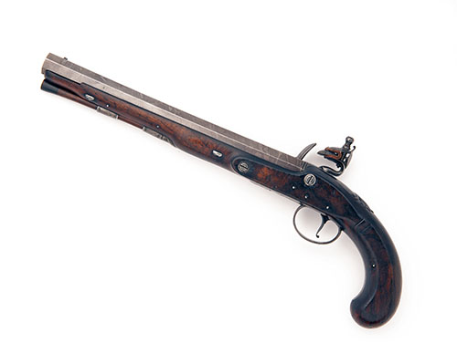 A 30-BORE FLINTLOCK DUELLING-PISTOL, no visible serial number,