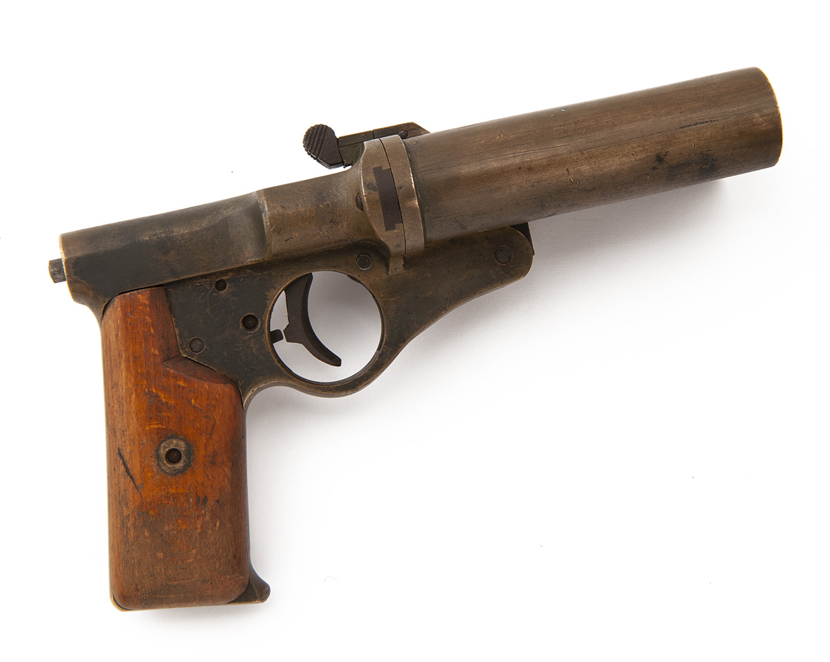 AN EXTREMELY RARE 1 INCH (26.5mm) ALL-BRASS DOUBLE-BARRELLED SIGNAL-PISTOL, UNSIGNED, serial no. 1545,