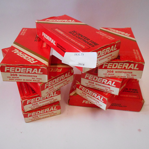 ONE HUNDRED AND SEVENTY TWO .308 WIN / 7.62 FEDERAL 150 GRN SP comprising of nine factory retail cartons, eight with twenty rounds in each and one with twelve in.