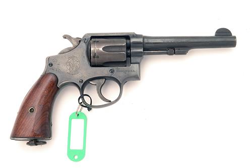 A .38 (SPL) SIX-SHOT REVOLVER SIGNED SMITH & WESSON, MODEL VICTORY, serial no. 758373,