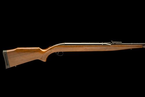 one of one thousand rifles made to celebrate the 100th anniversary of BSA in 1982, with blued 19 1/2in. barrel, ramp fore-sight, micro-adjustable rear-sight, tap-action loading, the air-chamber marked 'BSA PILED ARMS CENTENARY ONE OF ONE THOUSAND', special edition chequered walnut three-quarter stock with raised comb and cheek-piece, the pistol-grip's special 'BSA piled arms' cover detached but present, ventilated rubber recoil pad, rosewood schnabel fore-end tip, the whole appearing unfired, together with its original issue 'BSA' 4x40 telescopic sight and mounts, its original instructions and limited edition certificate papers, bullion badge, leather sling with 'Q.D.' swivels, oil-bottle (contents evaporated), target holder with targets and original vinyl gunbag, the whole contained within the original maker's carton (carton distressed and missing end-label)