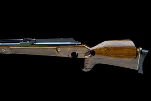 circa 1985, with blued drop-down 19in. barrel including built-on sound moderator, machined alloy breech and railed receiver, the breech marked ''WHISCOMBE JW50' together with the serial number and 'MADE IN ENGLAND', barrel locking catch on the left hand side, blued under-barrel double length compression chamber, figured thumbhole anatomical right hand walnut half-stock with contrasting pistol-grip cap and chequered fore-end, adjustable cheek-piece and rubber heel-plate, blued trigger-guard and concealed blued under-lever of 'BSA' style (light fading to finish at tip), the whole appearing little used