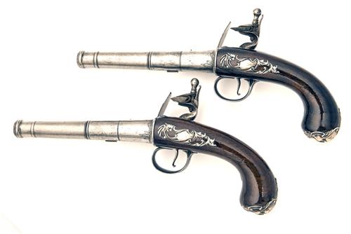 LEWIS BARBER, LONDON A FINE PAIR OF 20-BORE FLINTLOCK HOLSTER-PISTOLS, MODEL QUEEN-ANNE, no visible serial number,