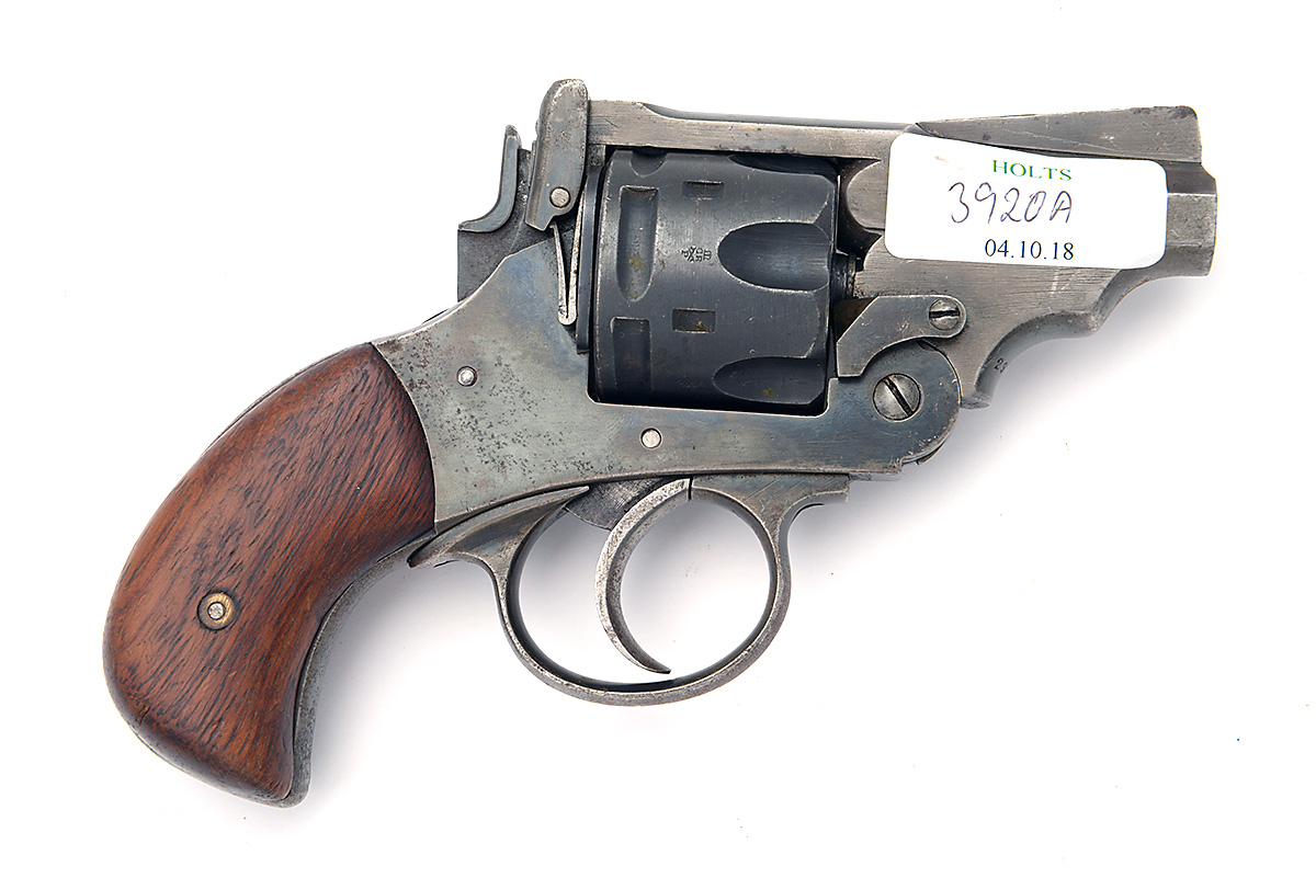A .455 SIX-SHOT REVOLVER PROJECT-GUN SIGNED WEBLEY & SCOTT, MODEL 'MKVI', serial no. 291318, dated for 1917, converted to a pocket-pistol with shortened 2 3/8in. barrel, break open frame, auto-ejecting fluted cylinder, bobbed hammer and smooth walnut birdshead grips
