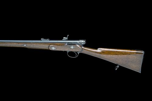 circa 1861, with 20 1/2in. blued barrel, block and blade fore-sight, ladder rear-sight graduated to 900 yds., the rear of breech inscribed 'TERRY'S PATENT 30 BORE', side-mounted lift and twist bolt, plain unsigned borderline engraved lock (traces of colour), walnut full-stock with iron furniture, single key and barrel-band and complete with iron clearing rod