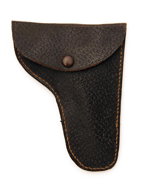 pre World War Two, with blued 2 5/8in. barrel, blued slide signed 'WAFFENFABRIK WALTHER ZELLA MEHLIS (THUR)' on the right and 'WALTHER'S PATENT MOD 8' on the left together with the Walther banner trademark, fixed sights, blued frame, chequered hard-rubber grips inlet with blue enamelled medallions stating the calibre and model, detachable magazine with heel release, the whole retaining virtually all its original factory finish and together with a later leather full-flap holster