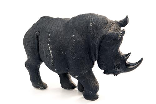 A SHONA ART AFRICAN SOAP STONE (VERDITE) SCULPTURE OF A BLACK RHINOCEROS,