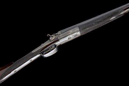 25 7/8in. nitro reproved barrels, rib engraved CHARLES HELLIS & SONS. 119. EDGEWARE RD. HYDE PARK. LONDON.', 2in. chambers, bored approx. true cyl. in both, rebounding back-action locks, acanthus scroll engraving with feathered bordering, retaining traces of original colour-hardening, 14 1/4in. stock, weight 4lb. 7oz., in its canvas and leather case