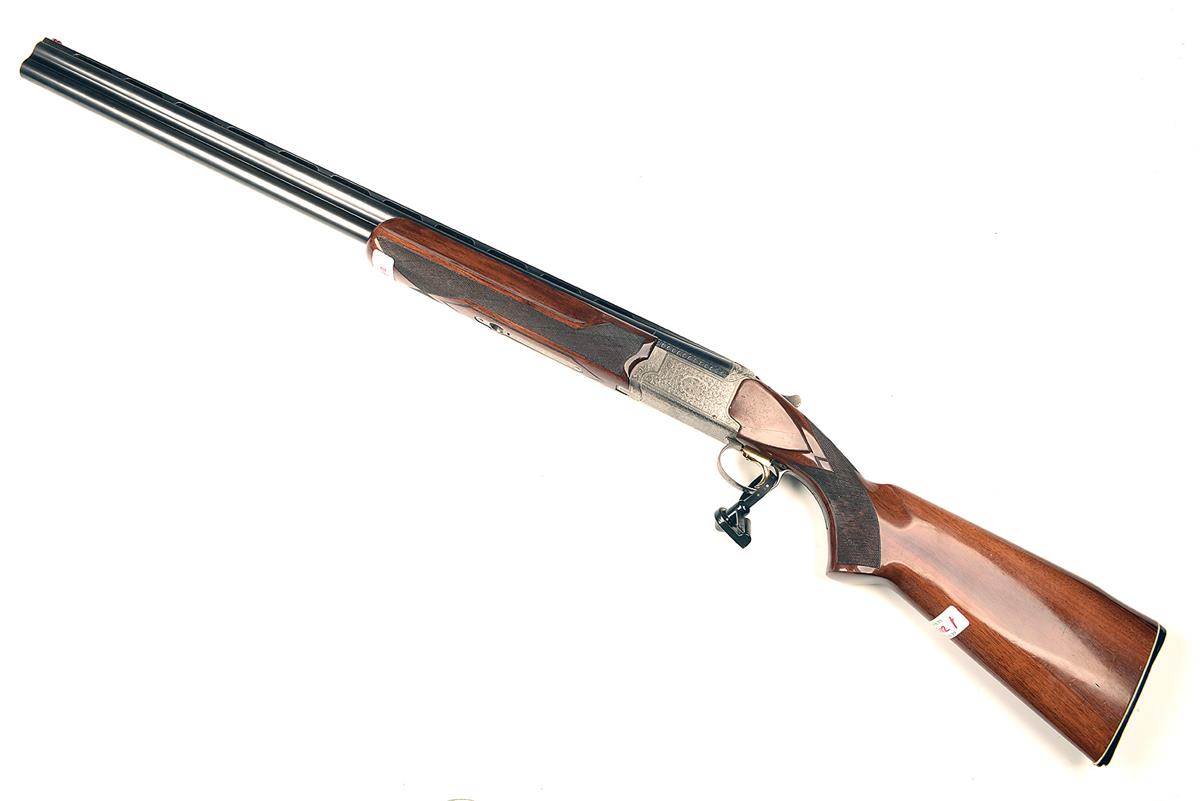 NIKKO 12-BORE 'MODEL 2500' SINGLE-TRIGGER OVER AND UNDER EJECTOR, serial no. K628302, 27 1/2in. nitro barrels with 13mm ventilated matt top-rib, 2 3/4in. chambers, bored approx. true cyl. in both, hold-open toplever, manual safety with integral barrel selector switch, gold-washed adjustable trigger, beaded border and acanthus scroll engraving surrounding a central bouquet, bright finish, 13 3/4in. pistolgrip stock including buttplate, weight 8lb. 2oz.