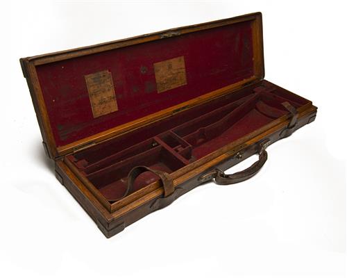 JAMES PURDEY & SONS A BRASS-CORNERED OAK AND LEATHER SINGLE GUNCASE,