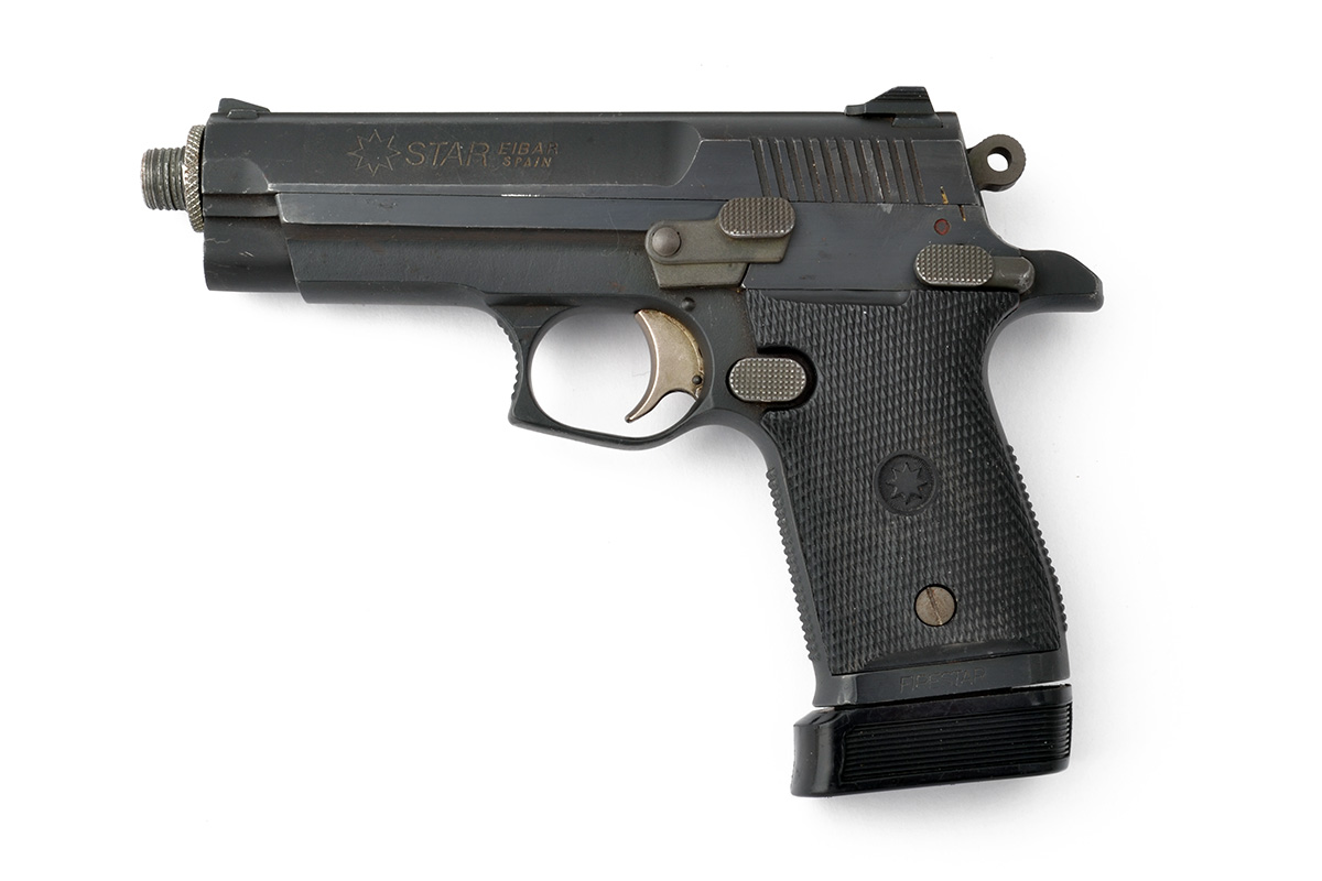 A 9mm (PARA) SEMI-AUTOMATIC PISTOL SIGNED STAR, MODEL 'FIRESTAR', serial no. 1917622, with 3 3/4in. barrel threaded at the muzzle (threads damaged), blued sighted slide, blued frame and chequered black plastic grips