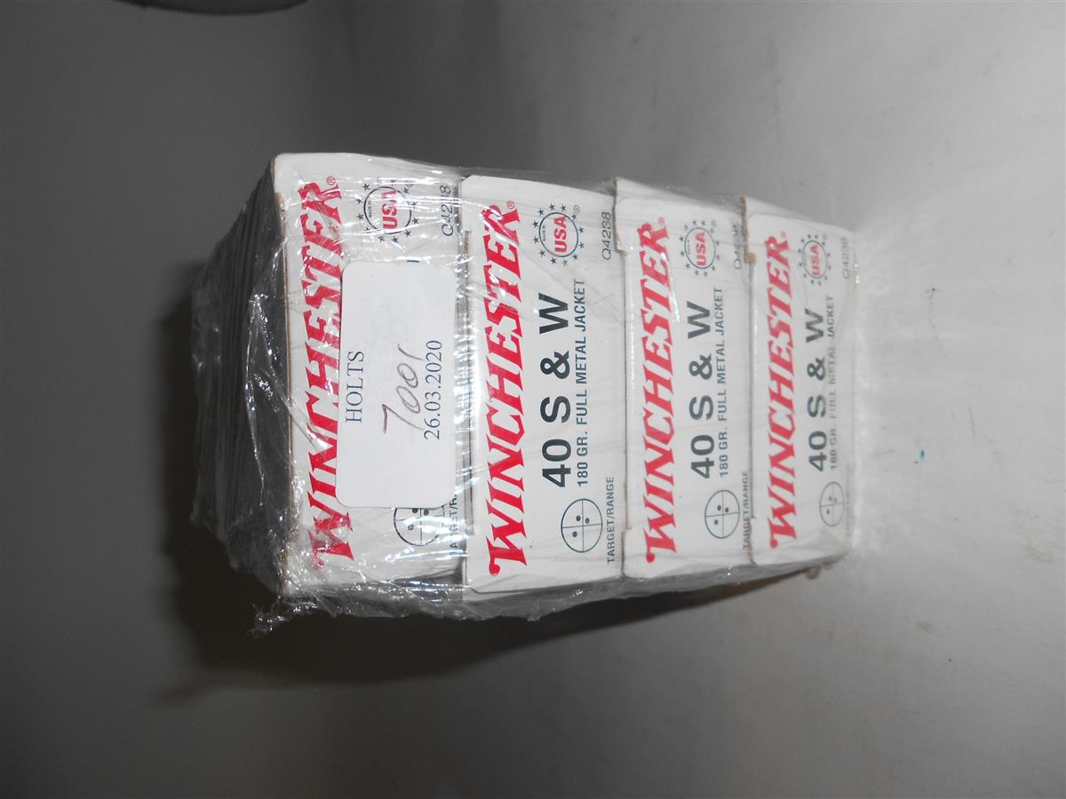 170 ROUNDS .40 S&W 180GRN FMJ AMMUNITION BY WINCHESTER Please note: Cartridges, primers and primed cases cannot be posted, if you purchase a Lot, please contact our shipping department to arrange a collection at any of our valuation days around the UK or collect from our despatch department in Wolferton PE31 6HA
