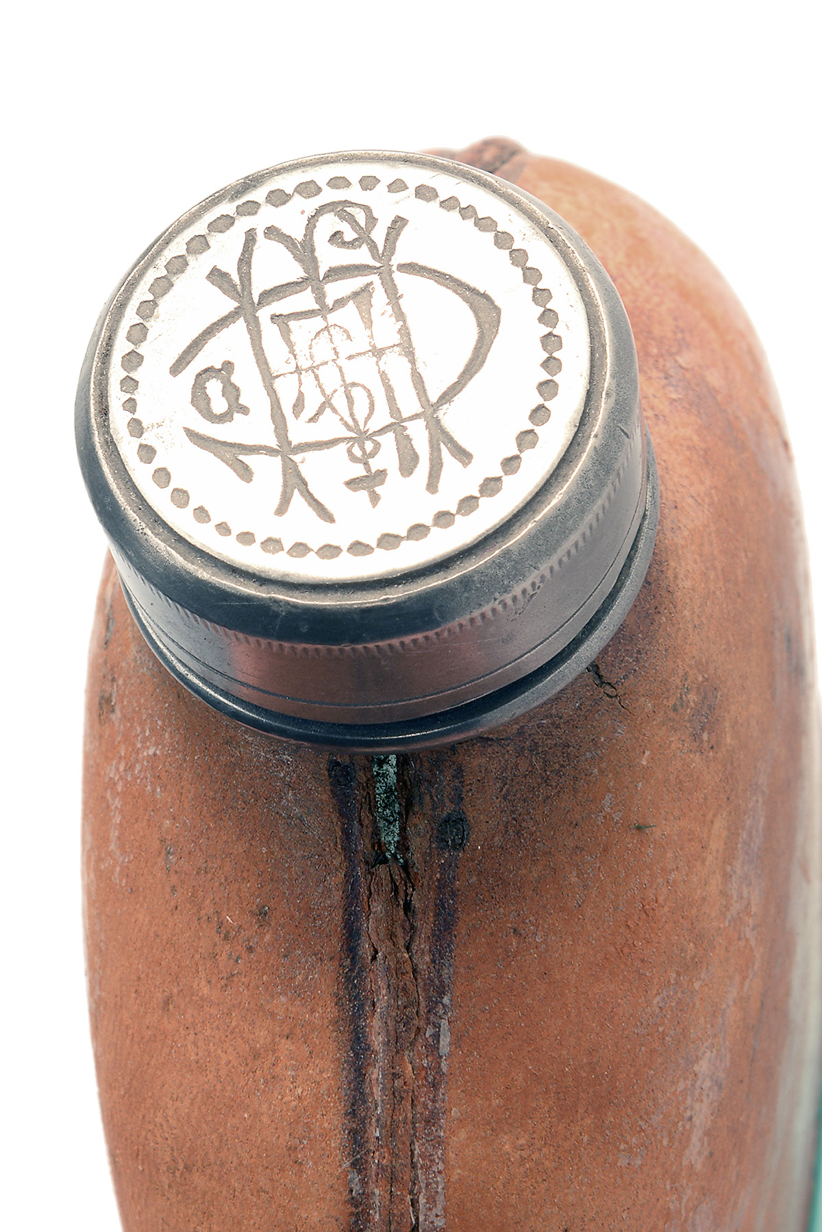 TWO VINTAGE HALF-LEATHER BOUND DRINKING FLASK WITH REMOVABLE CUPS,