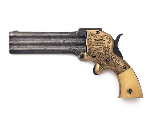 MARSTON, USA AN EXTREMELY RARE .32 RIMFIRE THREE-SHOT PISTOL, MODEL 4in. ENGRAVED DERRINGER, serial no. 13,