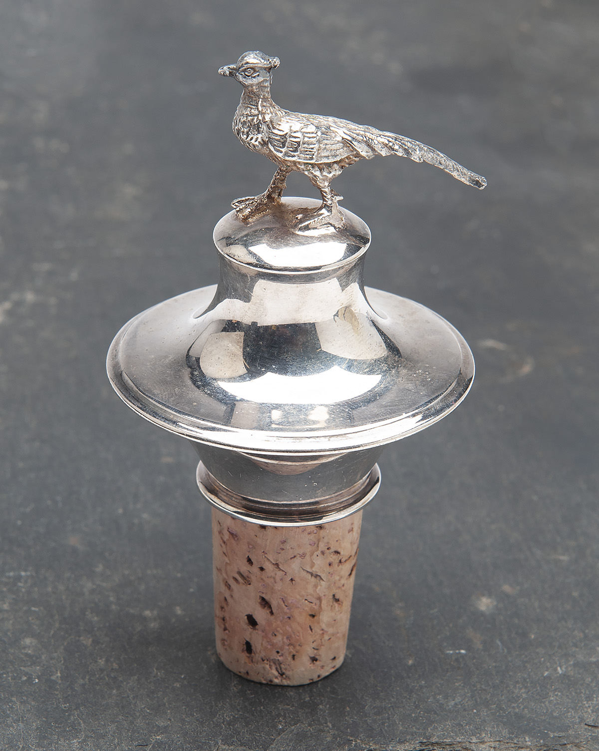 A NICKEL BOTTLE-STOP IN THE FORM OF A PHEASANT, SIGNED GARRARD