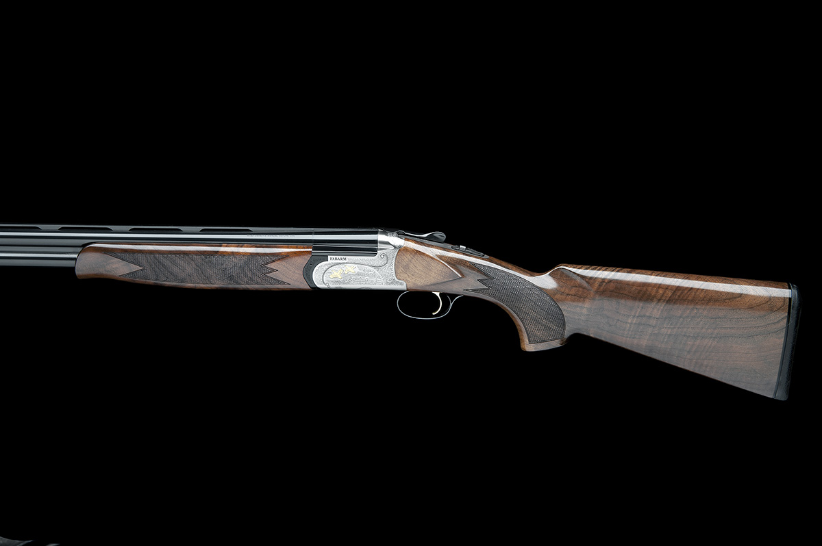 30in. superior proofed nitro barrels with 7mm ventilated matt top-rib, 3in. chambers, multichoke (with spares), hold-open toplever, manual safety with integral barrel-selector switch, gold-washed single trigger, acanthus scroll engraving surrounding scenes of gold-inlaid fowl in their naturalistic habitats, 14 1/4in. pistolgrip stock including 1/2in. rubber recoil pad, weight 7lb. 9oz., in its makers cardboard carton with paperwork