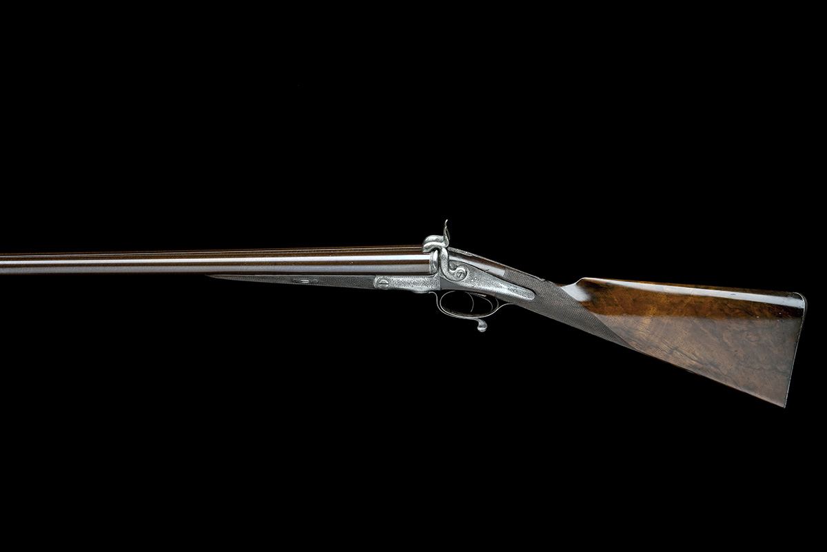 AN EARLY PATTERN 12-BORE ROTARY-UNDERLEVER PINFIRE DOUBLE-BARRELLED SPORTING GUN, serial no. 6071,
