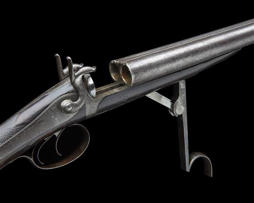 A SCARCE 12-BORE PINFIRE SELF-EXTRACTING DOUBLE-BARRELLED SPORTING-GUN, MODEL 'GHAYE'S PATENT', serial no. 6499,