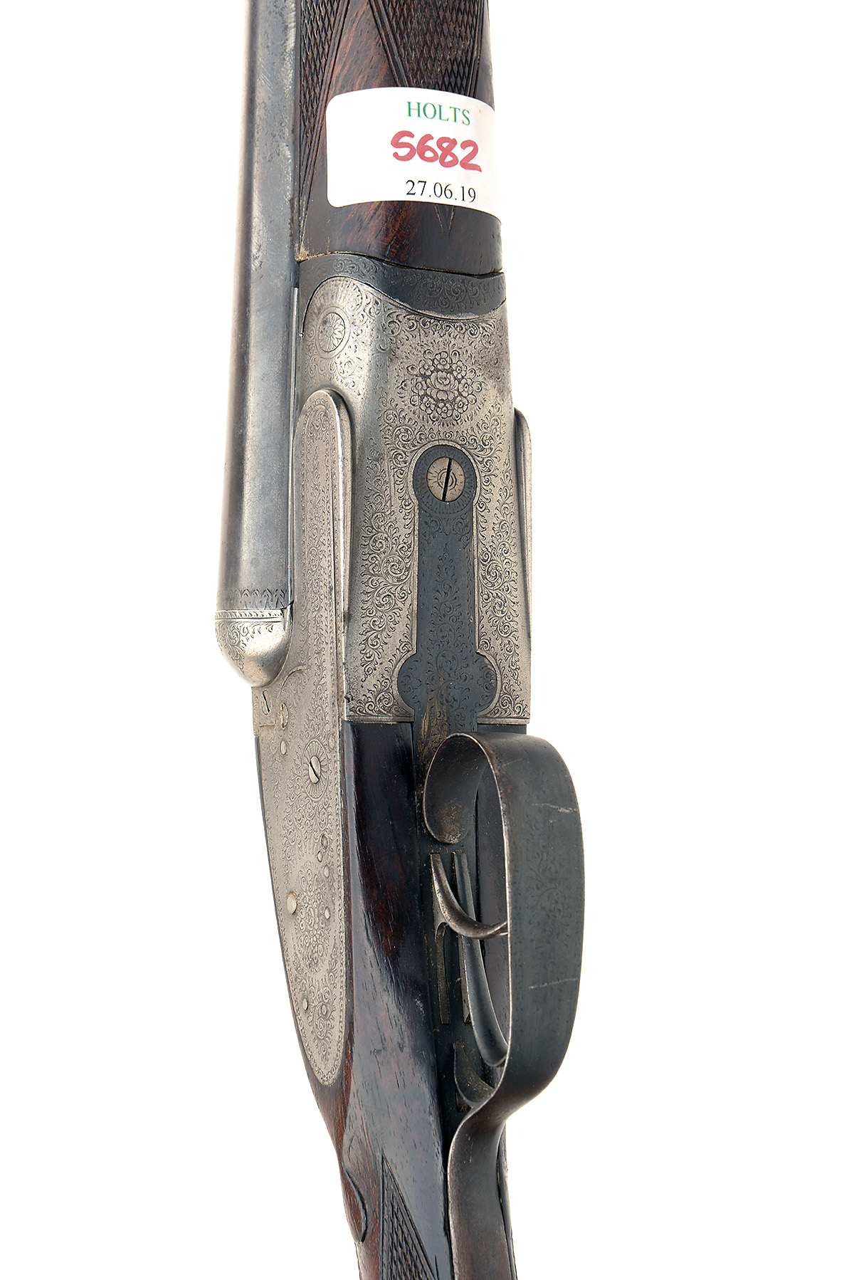 CHARLES BOSWELL 12-BORE SIDELOCK NON-EJECTOR, serial no. 16252, serial number on barrel loop only, 28in. replacement nitro reproved barrels, the rib engraved 'W. JEFFERY & SON. RUSSELL ST. PLYMOUTH.', 2 1/2in. chambers, bored approx. true cyl. and full choke, treble-grip action, automatic safety with gold-inlaid 'SAFE' detail, gold-inlaid cocking indicators, bouquet and scroll engraving, 13 3/4in. stock including buttplate, weight 6lb. 10oz.