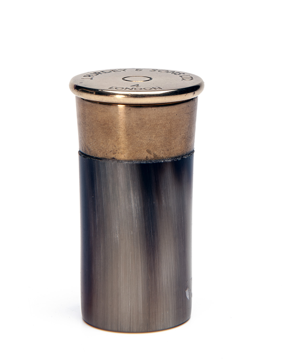 brass top engraved 'J. PURDEY & SONS LONDON', unscrewing to reveal eight numbered brass pegs
