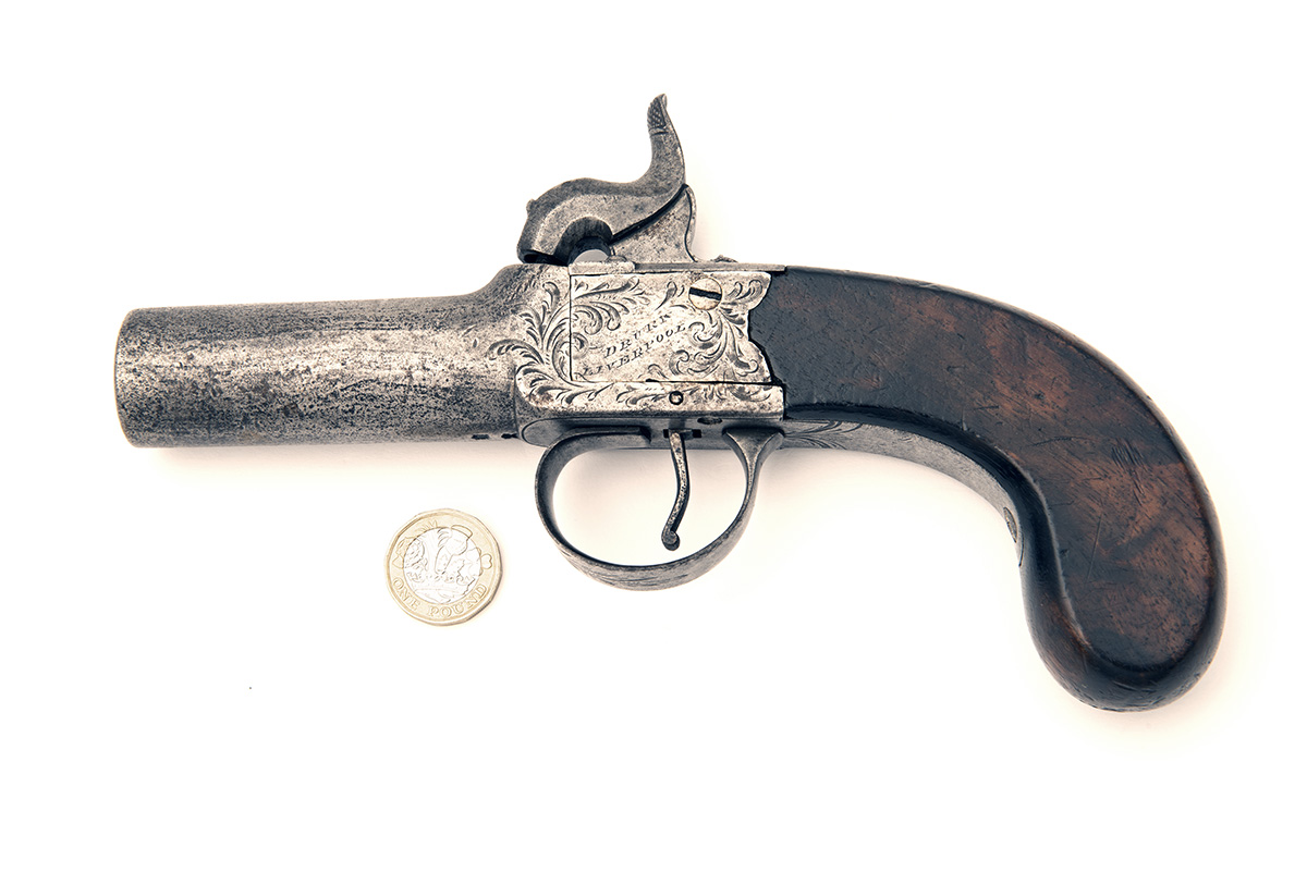 DRURY, LIVERPOOL A RARE OVERSIZED 10-BORE PERCUSSION POCKET-PISTOL, no visible serial number,