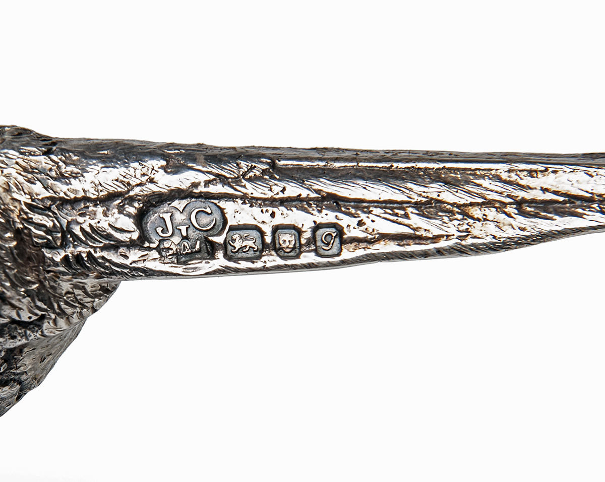 A STERLING SILVER FULL MOUNT OF AN OPEN WINGED PHEASANT,
