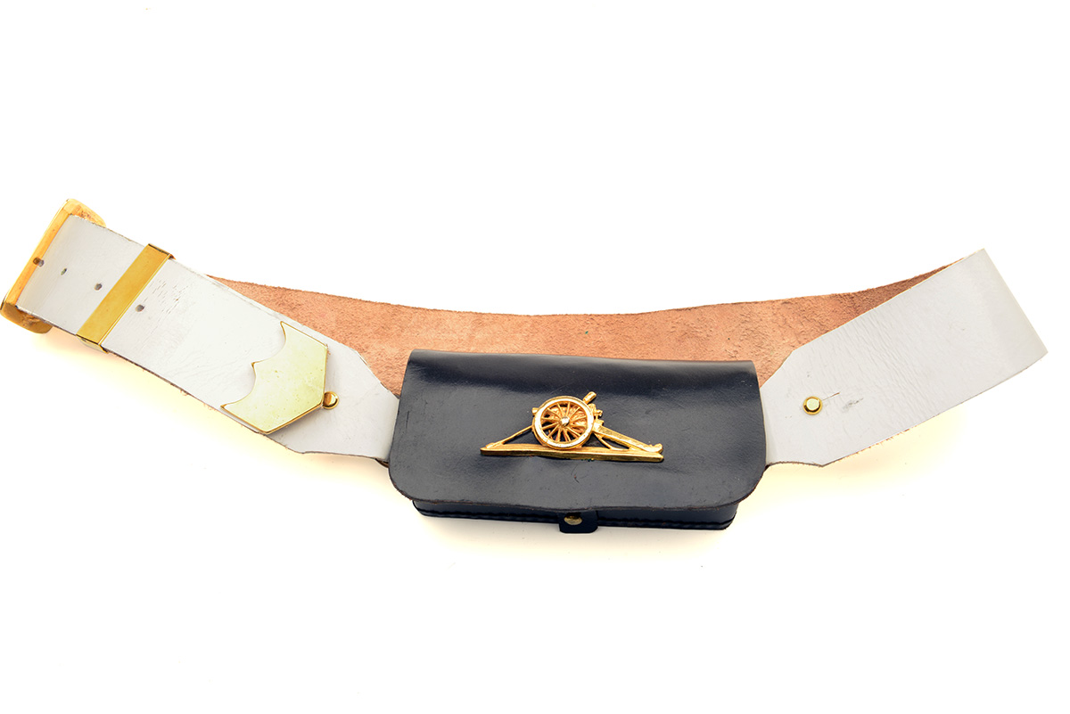 A REPRODUCTION BRIQUET SWORD TOGETHER WITH A REPRODUCTION ROYAL ARTILLERY CROSS-BELT & POUCH, (2)