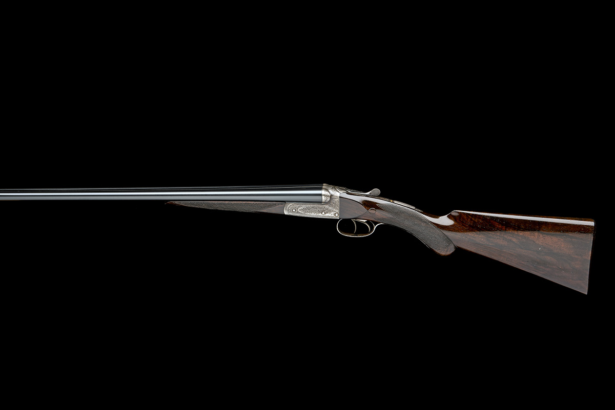 27in. nitro barrels, the rib engraved 'WATSON BROS. 23. OLD BOND STREET. LONDON.', 2 1/2in. chambers, bored approx. true cyl. in both, slender toplever, automatic safety with gold-inlaid 'SAFE' detail, fine acanthus scroll engraving surrounding a banner relief engraved 'WATSON BROS' on a matted background and with some feathered bordering, retaining slight traces of original colour-hardening and finish, 11 3/4in. figured semi-pistolgrip stock, weight 4lb. 8oz.