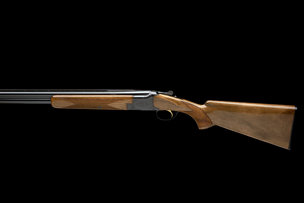 for 1968, 28in. nitro barrels with 5mm ventilated matt top-rib, 3in. chambers, bored approx. 1/4 and 1/2 choke, hold-open toplever, manual safety with integral barrel selector switch, gold-washed single trigger, blued action with some acanthus flourishes, the underside with the model designation, 14 1/4in. pale walnut pistolgrip stock including Browning trademark buttplate, weight 6lb. 5oz.