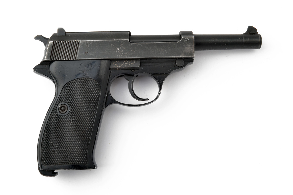 ** A 9mm (PARA) SEMI-AUTOMATIC PISTOL SIGNED MANURHIN, MODEL ' WALTHER P1', serial no. 249199, being a French manufactured licenced product, with 5in. exposed barrel, slide with safety catch, blacked alloy frame and chequered black bakelite grips, missing magazine