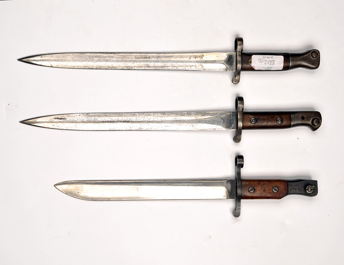 THREE WORLD WAR ONE AND EARLIER KNIFE BAYONETS, (3)
