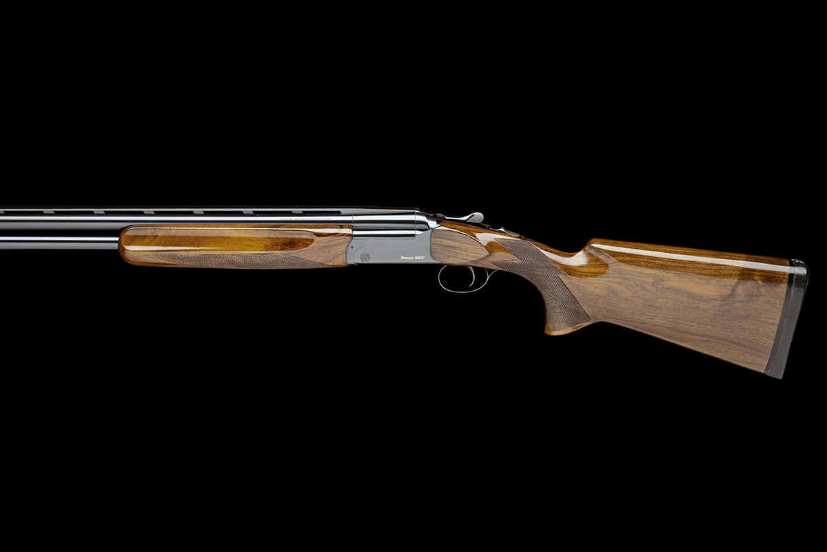 29 1/2in. nitro barrels with no mid-rib and 10mm ventilated matt top-rib, 2 3/4in. chambers, multichokes (with spares), manual safety with integral triggerplate release catch, the makers name and model designation gold-inlaid on the left side, blacked finish, 14 1/4in. pistolgrip stock including 3/4in. rubber recoil pad (cracked at hand) weight 8lb. 8oz., in its makers universal case