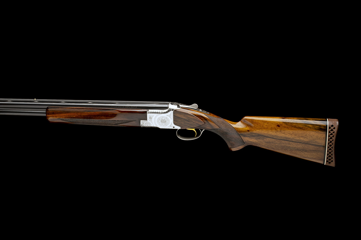 30in. nitro barrels with 12mm ventilated matt rib with intermediate bead sight, 2 3/4in. chambers, bored approx. 3/4 choke in both, hold-open toplever, manual safety with integral barrel-selector switch, gold-washed trigger, floral and scroll engraving, bright finish, 14in. pistolgrip stock including 1in. ventilated rubber recoil pad, weight 7lb. 11oz.